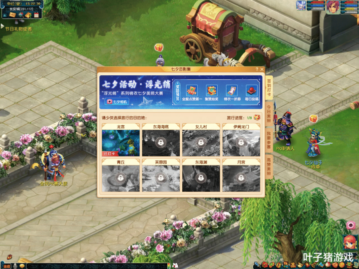 七夕活动的举办时间为2025年8月27日12:00-2025年9月1日12:00,只要你满足相应条件,就可以参与其中,获取奖励。比如,今年七夕活动中的“奇幻旅”就是一个奖励极高的单人玩法,只要你≥50级,就可以前往长安城(250,109)或女儿村(66,66)的一线牵处,选择“奇幻旅”领取任务,开启旅程。每次完成旅行打卡任务后,可以获得经验;完成所有旅行打卡任务,还有机会获得藏宝图、强化石、特赦令牌等奖励。