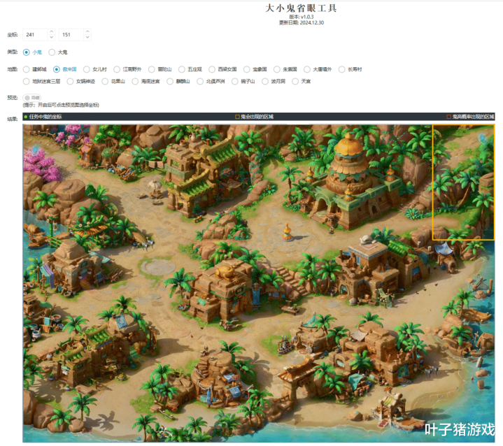 除此之外,为了方便大家抓鬼致富,我们还专门为大家制作了“抓鬼小助手”,大家只需输入系统提供的坐标,它就能够根据输入的坐标智能分析出鬼魂可能出现的大致范围,帮助大家迅速定位目标,非常适合新区玩家使用!